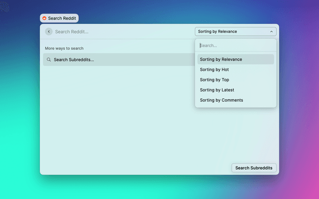 Search Reddit, Subreddits, or within Subreddits and list the results in Raycast.