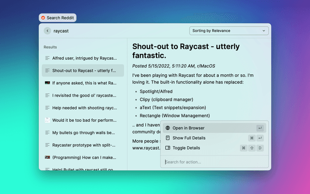 Raycast Reddit Search