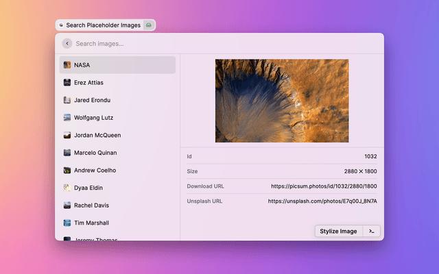 • If you find an image you like in the Search Placeholder Image command, you can use the Set Desktop Wallpaper action to set it as your desktop wallpaper.